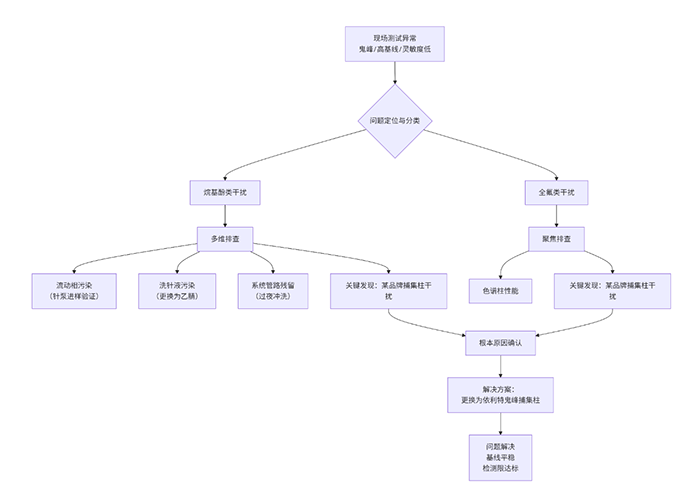 面對(duì)復(fù)雜的干擾現(xiàn)象,我們與客戶技術(shù)團(tuán)隊(duì)共同開啟了一場(chǎng)系統(tǒng)性的“排雷”行動(dòng)。整個(gè)排查思路如下圖所示: