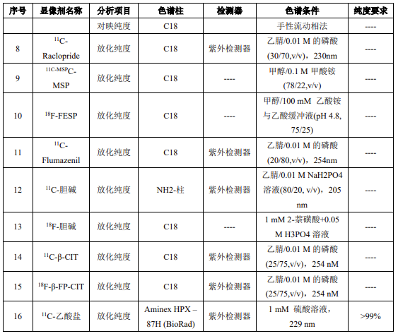\(^{18}\text{F}\)是載于美國藥典的第一個 PET 放射性藥物,需要對放射性核純度、化學(xué)純度、放射化學(xué)純度、比活度等質(zhì)量指標(biāo)進(jìn)行控制,同時需要對合成反應(yīng)的副產(chǎn)物含量進(jìn)行控制,而液相色譜法是進(jìn)行\(zhòng)(^{18}\text{F}\)-FDG 化學(xué)純度分析的好方法。