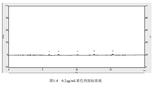 1.4.1 著色劑標(biāo)準(zhǔn)品分析結(jié)果
