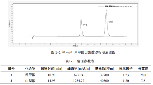 由表 1-4 可知,按照本解決方案提供的儀器及檢測(cè)方法進(jìn)行分析,苯甲酸和山梨酸在 2-200mg/L 的濃度范圍內(nèi),線性良好,相關(guān)系數(shù)在 0.999 以上。