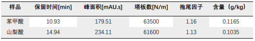 樣品中山梨酸和苯甲酸含量分析結(jié)果
