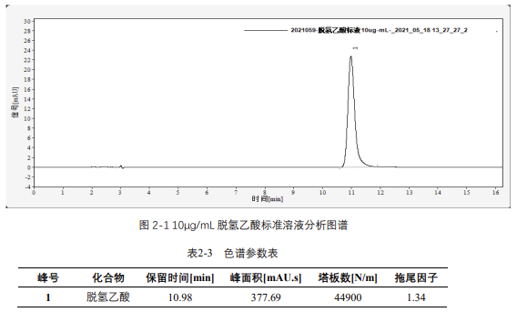 圖 2-1 10μg/mL 脫氫乙酸標(biāo)準(zhǔn)溶液分析圖譜