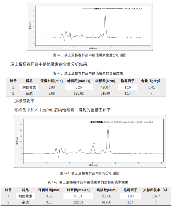 參考標(biāo)準(zhǔn):GB/T 21915-2008《食品中納他霉素的測(cè)定 液相色譜法》,分析瑞士蛋糕卷中納他霉素的含量