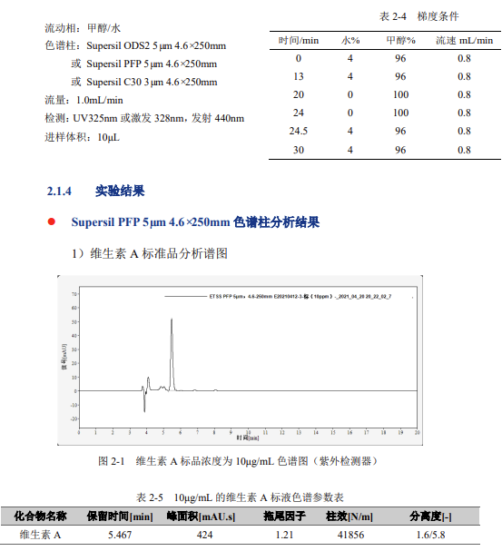 Supersil PFP 5μm 4.6×250mm 色譜柱分析結(jié)果