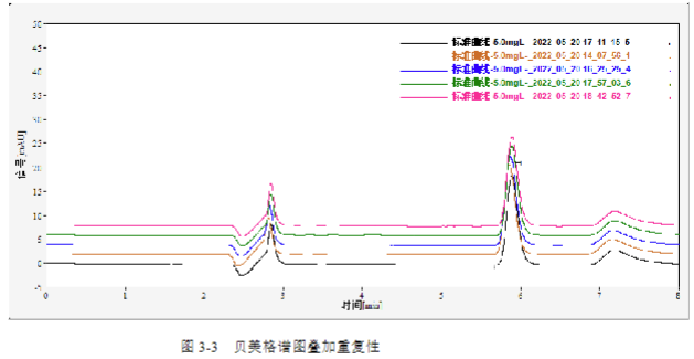 該色譜條件下,儀器的基線噪聲為 0.0168 mAU,根據(jù)信噪比 \(S/N=3\),計(jì)算得到甲巰咪唑的儀器小檢測(cè)濃度為 0.005 mg/L,實(shí)際方法檢出限為 0.104 mg/kg。