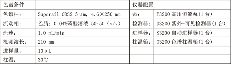 依利特新款的EClassical 3200液相色譜儀搭配經典的Supersil ODS2色譜柱,對四味土木香散中的異土木香內酯成分進行分析,柱效高,分離度好,滿足定性定量分析的需求。