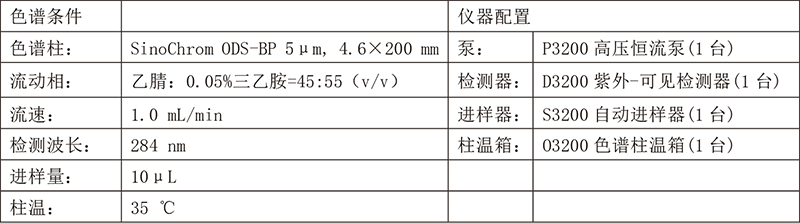 依利特新款的EClassical 3200液相色譜儀搭配經(jīng)典的SinoChrom ODS-BP色譜柱,對北豆根膠囊中的蝙蝠葛堿成分進行分析,柱效高,分離度好,滿足定性定量分析的需求。